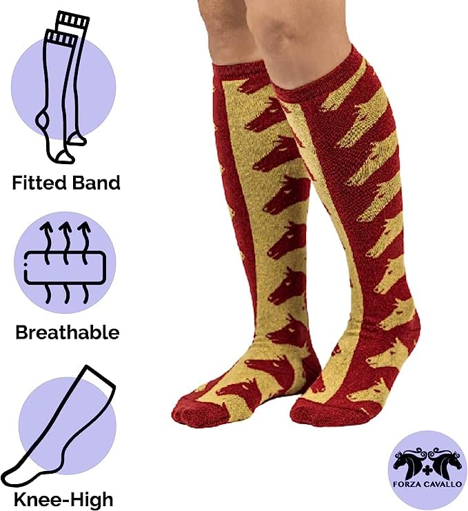 Forza Cavallo Premium Quality High Knee Horse Pattern Women's And Youth Equestrian Socks | One Size quantity